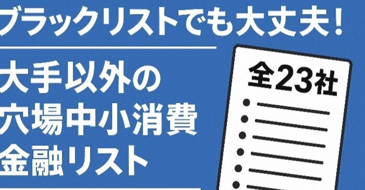 ブラックリストでも大丈夫!大手以外の穴場中小消費者金融リスト(全23社)https://note.com/cashingmeizin/n/n2831822011c0 ブラックリストで···
